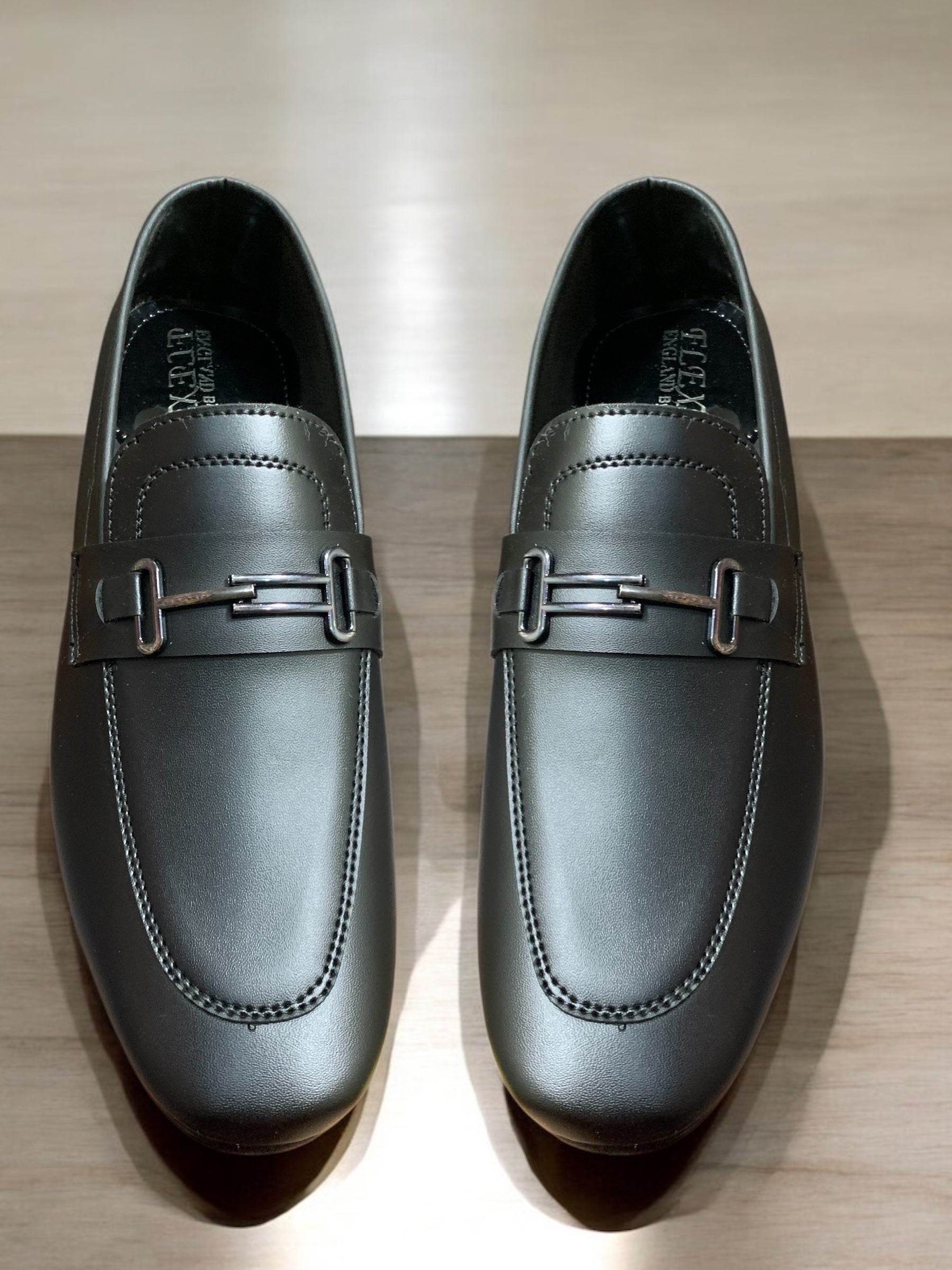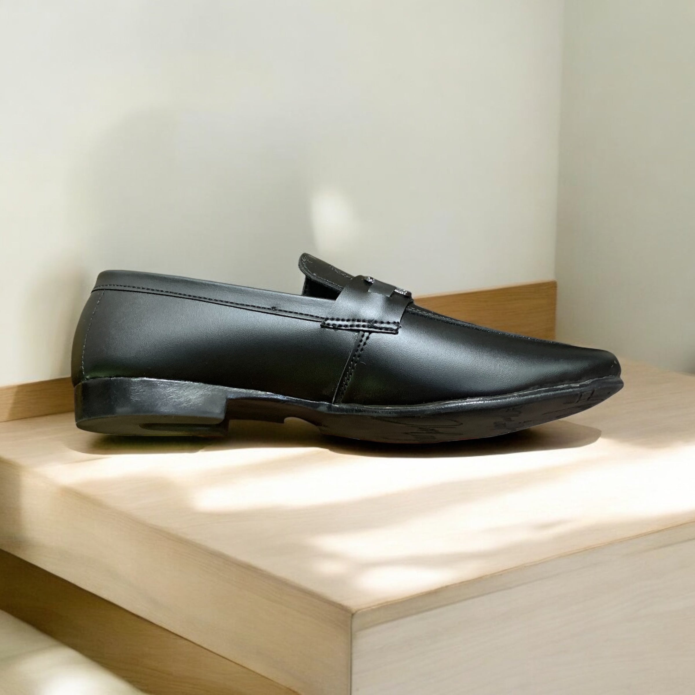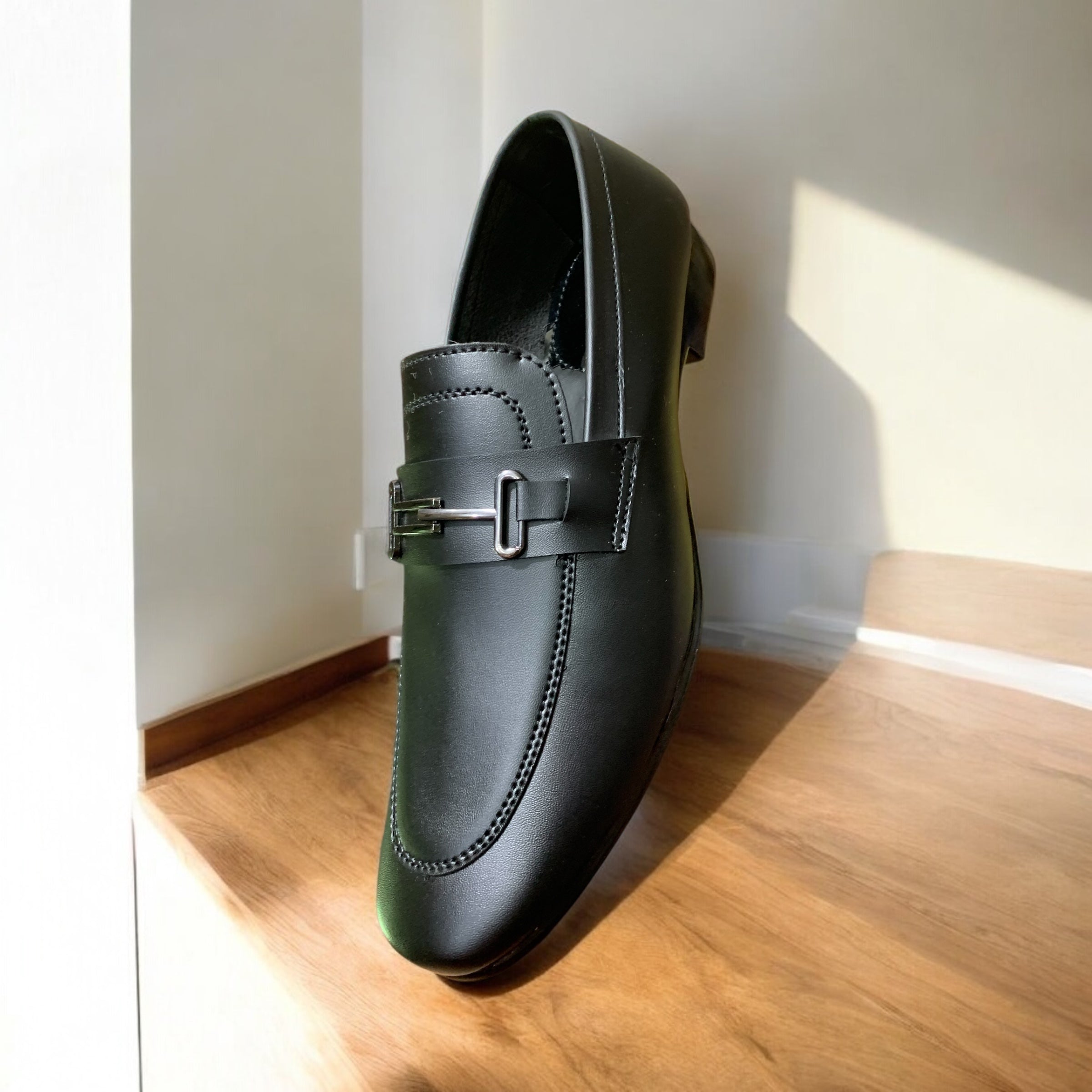 Strike a balance between modern precision and understated elegance with the Obsidian Bolt Loafer. Crafted in smooth graphite black leather, this loafer is defined by its matte-finish upper and a brushed gunmetal bit detail—clean, minimalist, and unmistakably sharp. Its low-profile silhouette and cushioned insole bring all-day comfort, while the tonal stitching adds a quiet edge of craftsmanship.