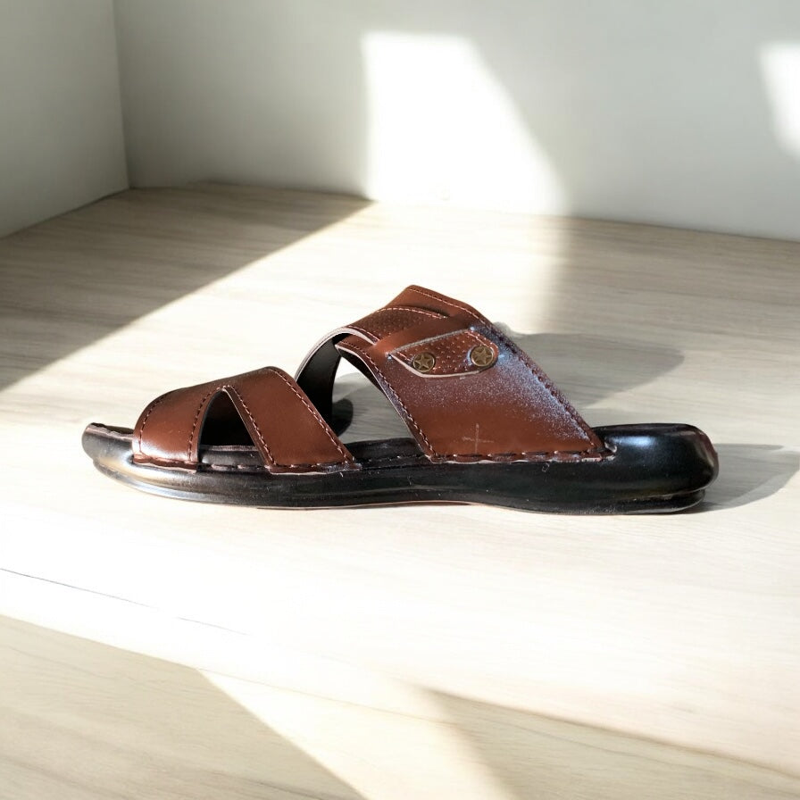 Add timeless ease to your step with AirGlide. Designed with sleek cut-outs and a smooth brown finish, it offers breathable comfort and casual style — ideal for summer days and everyday wear.