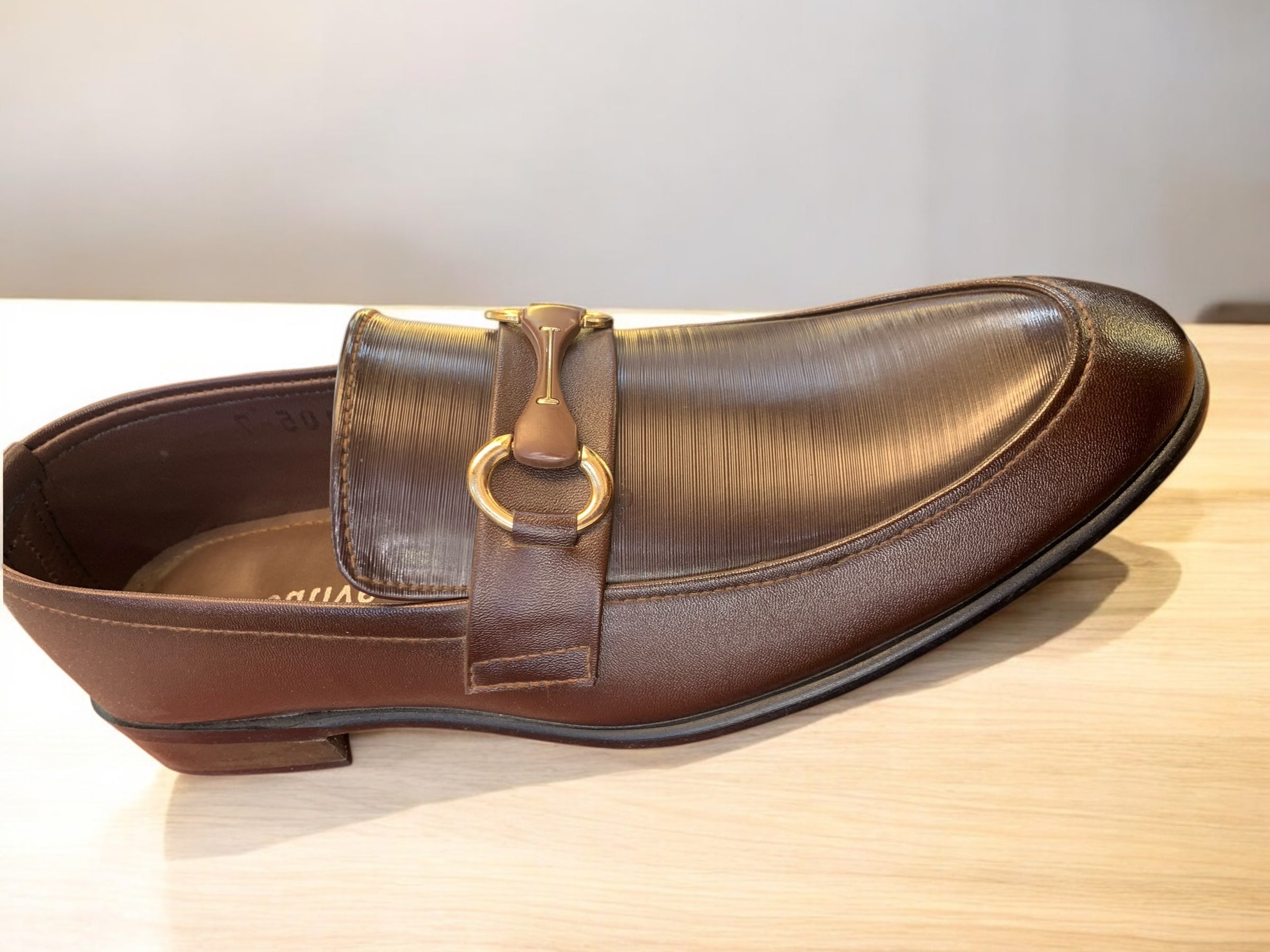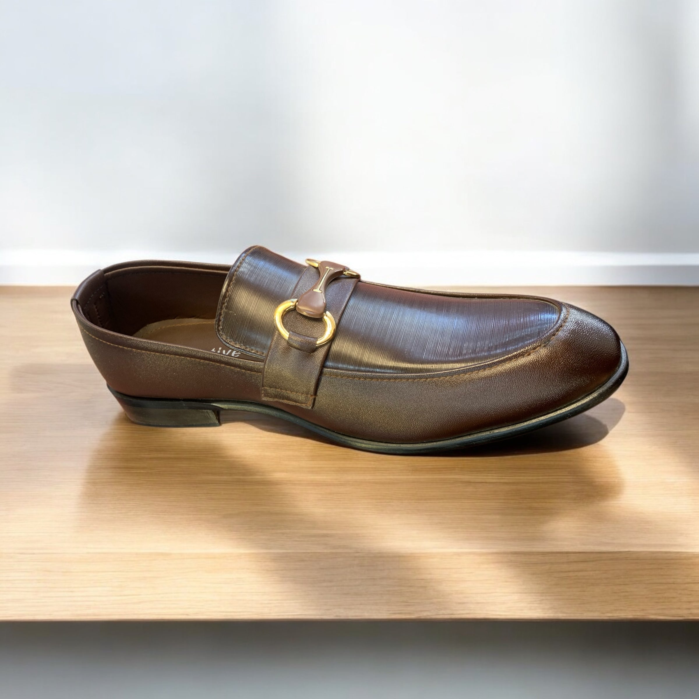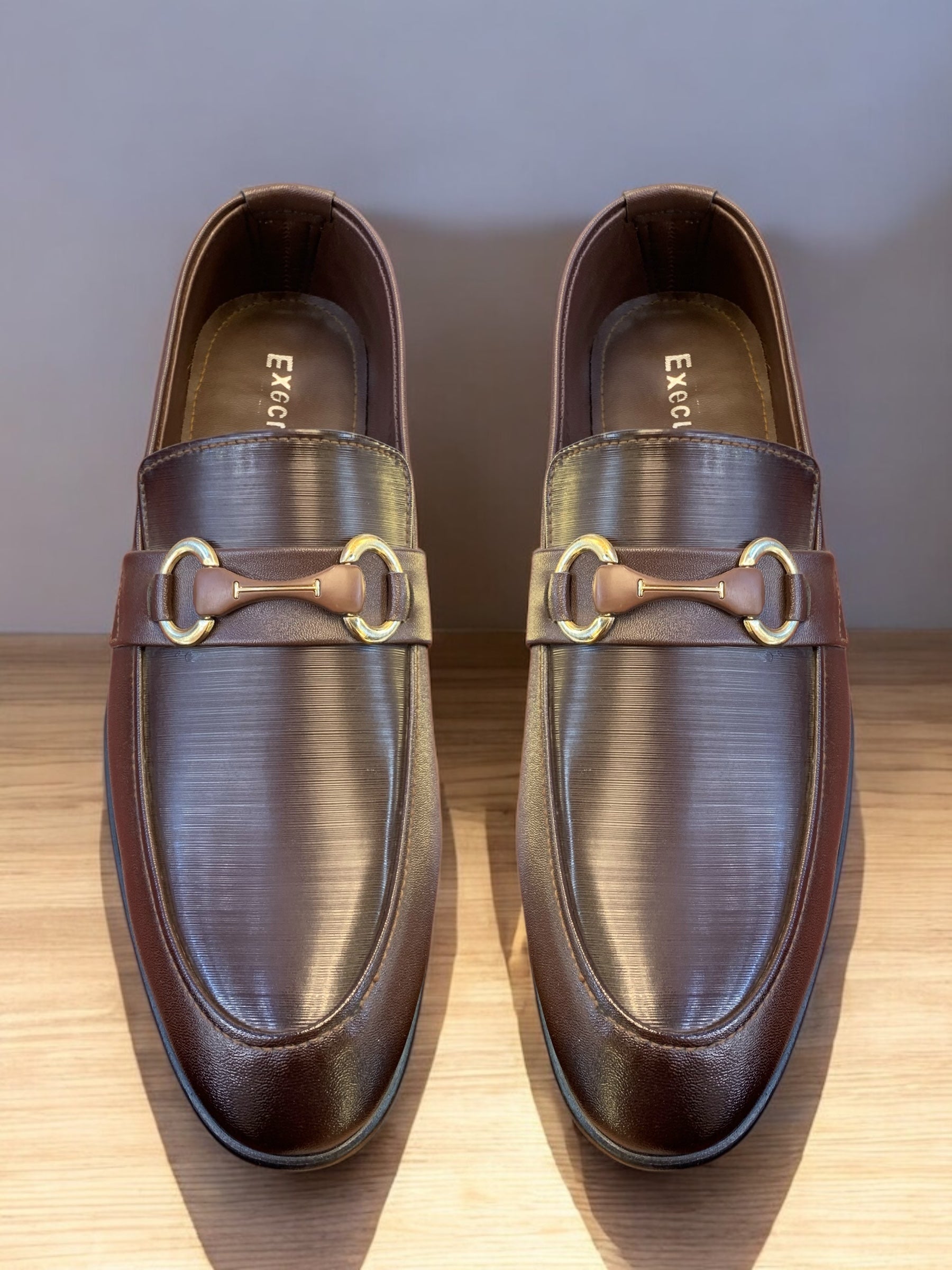 Stride into understated elegance with the Regent Bit Loafer — a masterclass in refined minimalism. Cloaked in deep mocha leather with a subtle textured finish, this loafer pairs timeless design with a contemporary polish. The signature gold-tone horsebit hardware offers just the right touch of sophistication, making it a versatile staple for the discerning gentleman.
